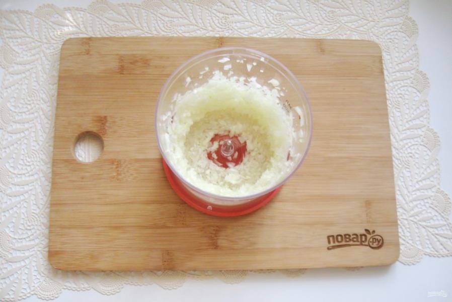 Одну луковицу очистите, помойте, измельчите в блендере.