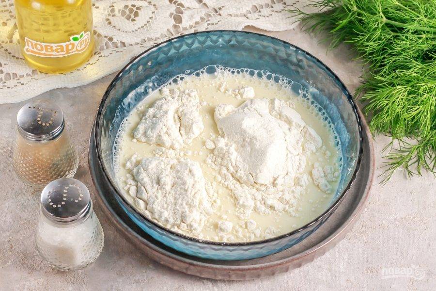 Молоко влейте в глубокую миску или салатник, всыпьте соль и вбейте куриное яйцо. По желанию можете добавить измельченные пряные травы или специи. Аккуратно все взбейте.