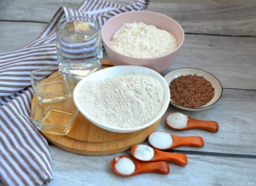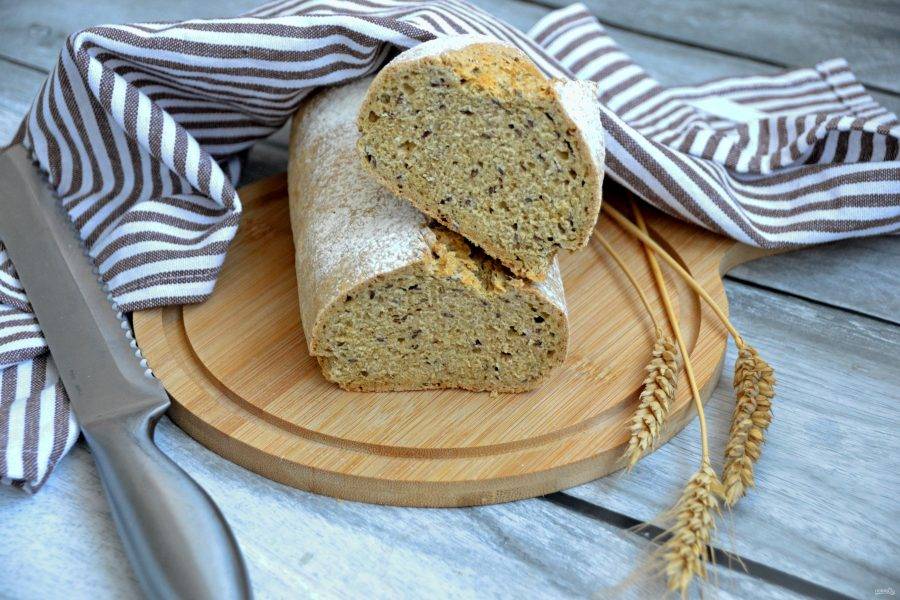 Хлеб получился вкусный и полезный, благодаря тому, что использована пшеничная и ржаная цельнозерновая мука, и семена льна. К тому же он приготовлен без дрожжей.