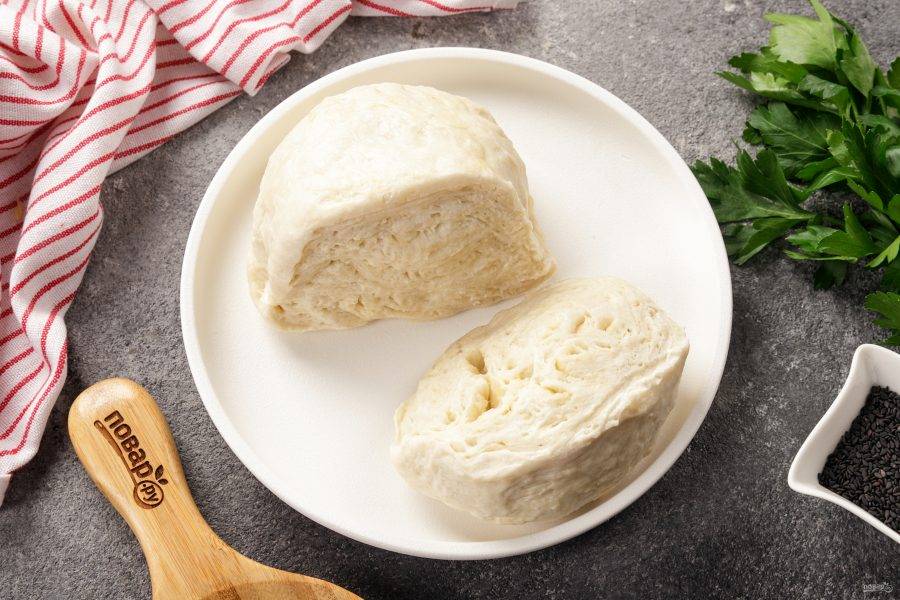 Тесто разделите на две части. Одна часть должна быть больше другой.