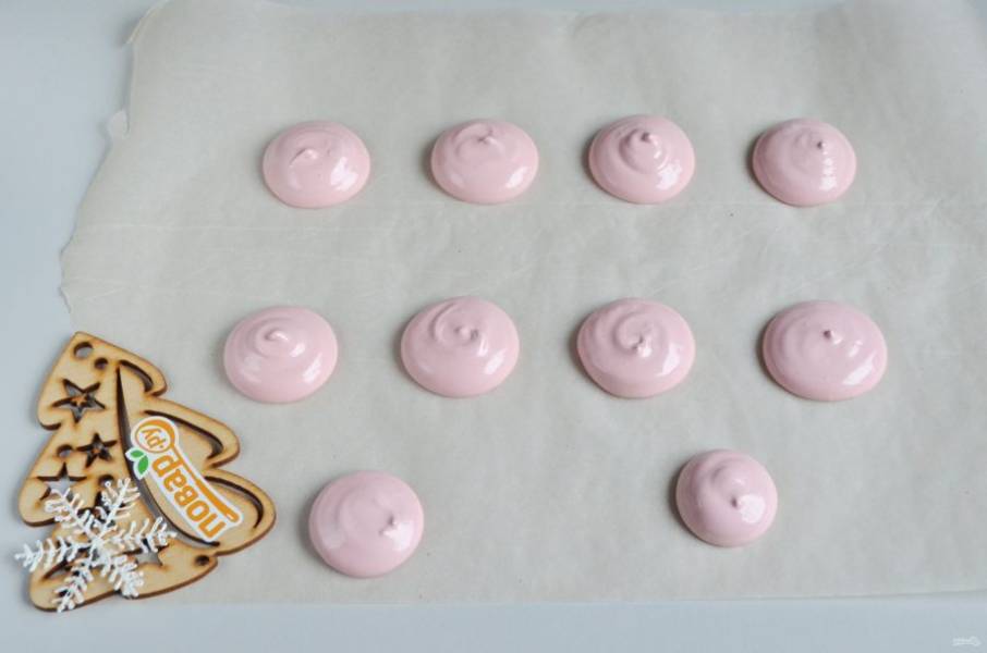 Сушить безе можно на силиконовым ковриках или пергаменте. Сначала сделайте круглые розовые мордочки. Меренга плотная, чтобы получилось более-менее круглой формы, после того, как я отсадила их, зубочисткой ровняла, делала круговые движения, чтобы они немного расплылись.