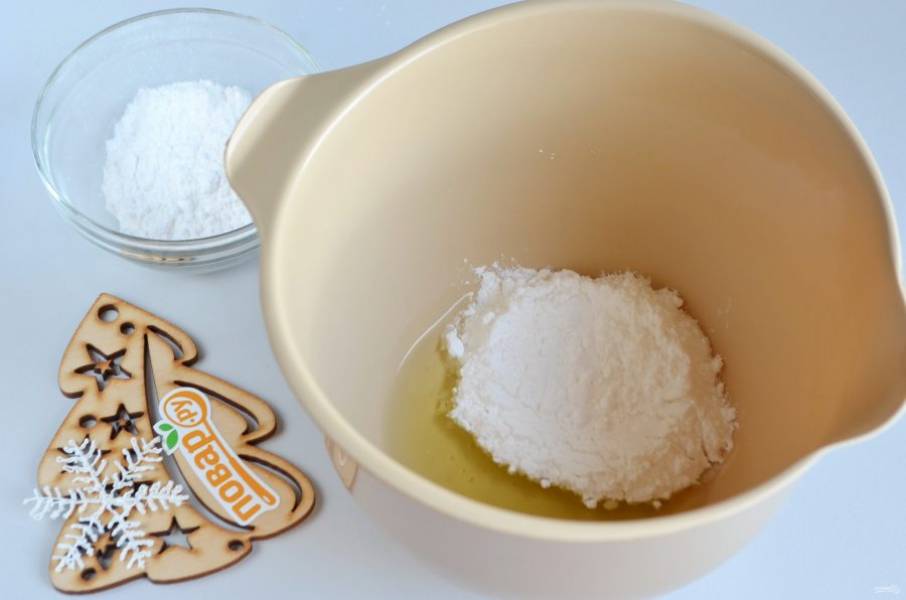 Отделите желтки от белков. Как правило, сахарной пудры используется по весу вдвое больше, чем белков (2:1). То есть, если один сырой белок от среднего куриного яйца весит 25-30 граммов, то сахара необходимо ровно в 2 раза больше – 50-60 граммов. В белки влейте лимонный сок и положите половину сахарной пудры. Начинайте миксером взбивать массу от минимальных оборотов, постепенно добавляя, переходя на максимальный режим.