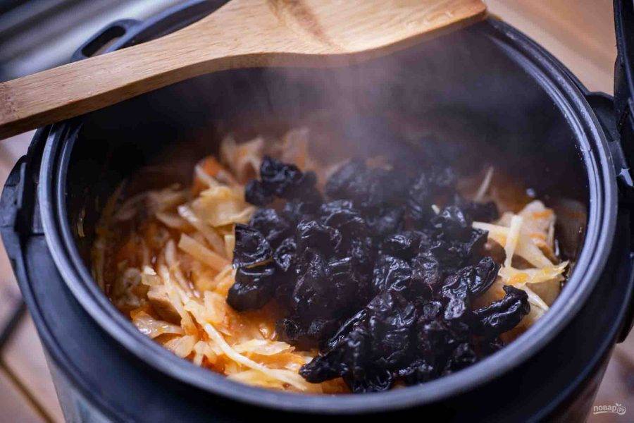 За 10 минут до окончания процесса выложите чернослив в мультиварку, перемешайте все и дождитесь сигнала об окончании процесса.