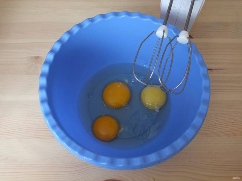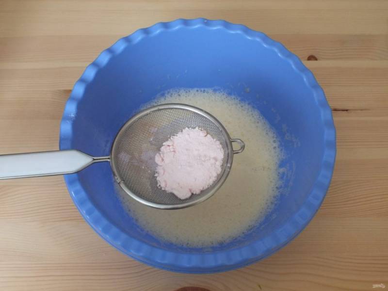 Измельчите кисель, если он в брикете, и введите его через сито в яйца. Взбейте еще раз.