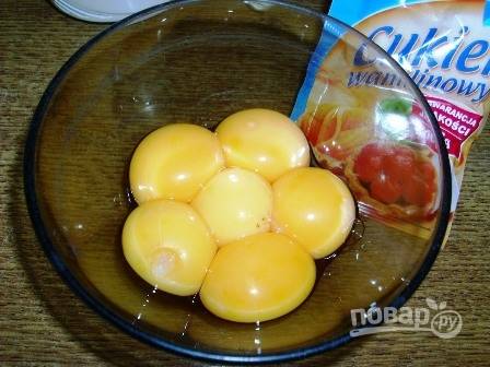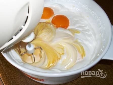 Добавляем желтки и продолжаем взбивать еще минуты 3-4.