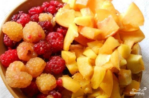 6. Моем и нарезаем фрукты и добавляем ягоды. Можно использовать замороженные.