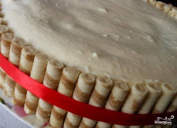 9. Когда торт застынет, достаем его из холодильника и снимаем форму.