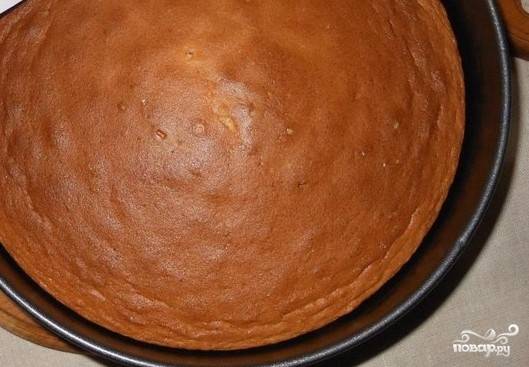 1. За основу этого торта берется обычное бисквитное тесто, которое готовится классическим способом.