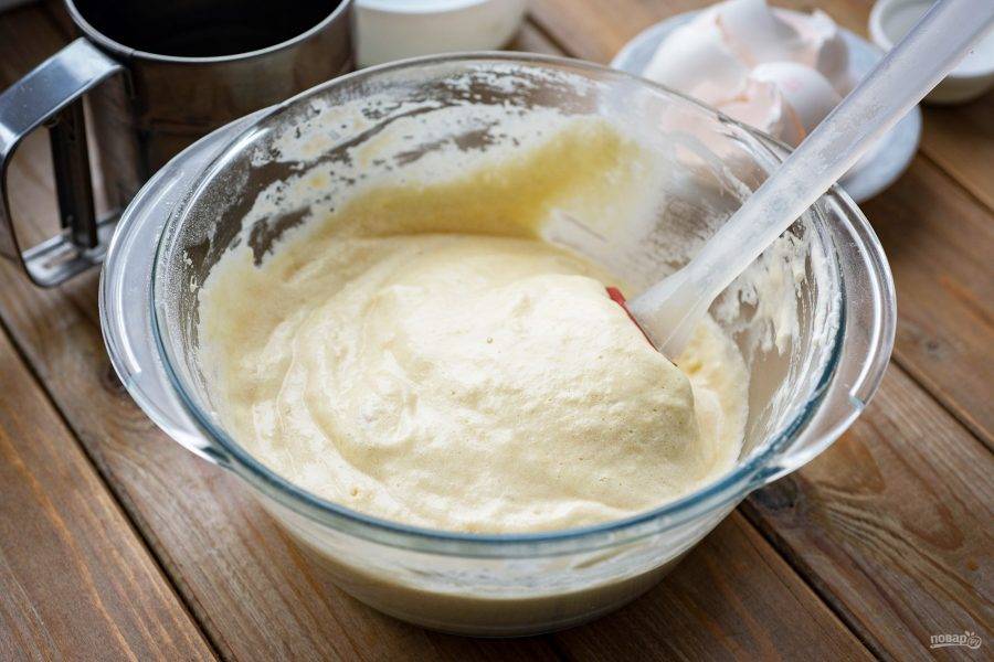 В итоге тесто должно получиться очень воздушным, как на бисквит.