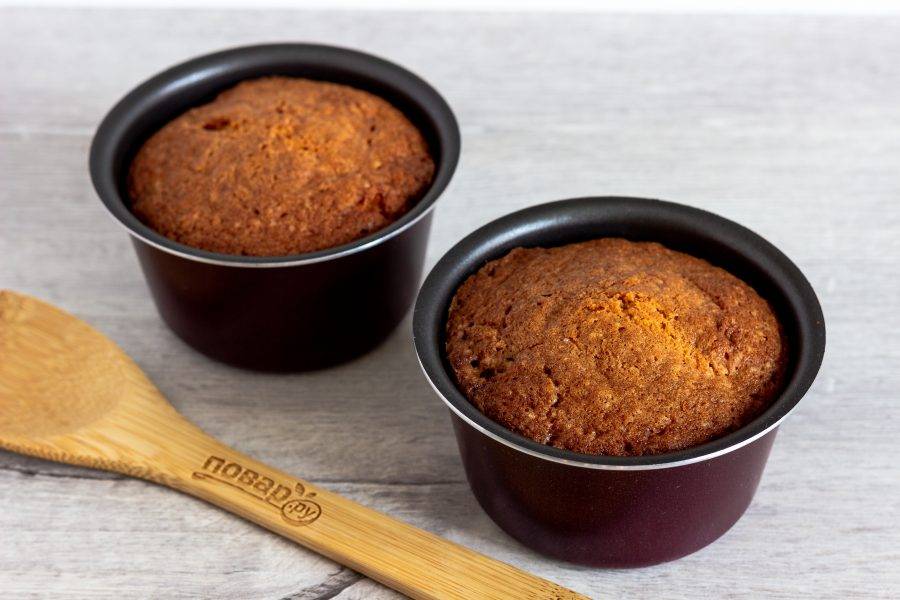 Выпекайте в разогретой до 180 градусов духовке 35-40 минут. Проверяйте готовность деревянной шпажкой. Время выпечки зависит от размера куличей.