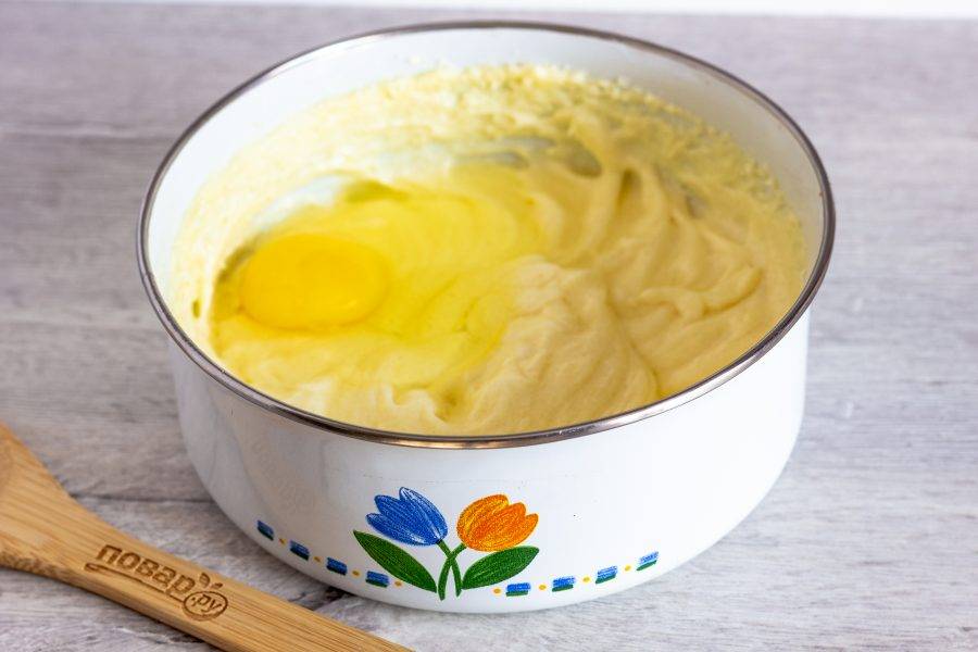 Затем по одному вводите яйца. Взбивайте массу после добавления каждого яйца по 1-2 минуты.