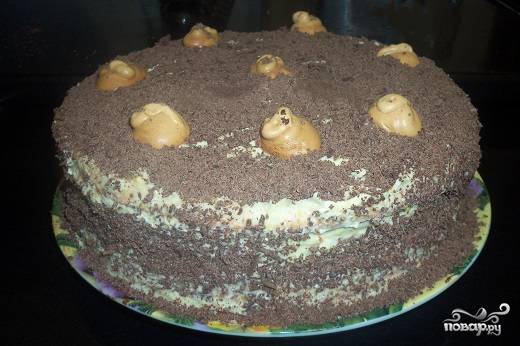 Тортик почти готов. Украшаем его остатками безе и тертым шоколадом. Подаем к чаю или кофе. Приятного аппетита!