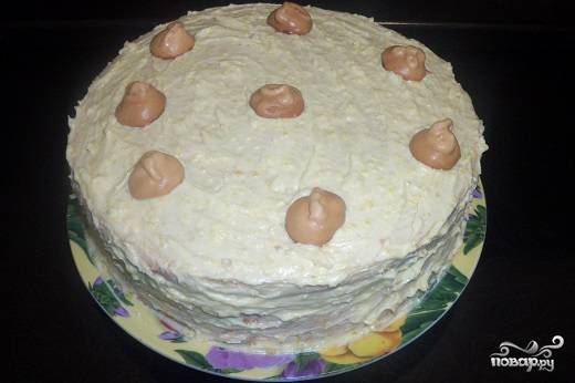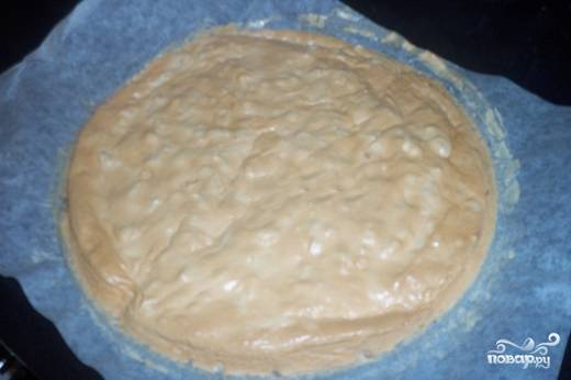 Готовим слой из безе. Взбиваем белки с неполным стаканом сахарного песка. Выпекаем 3 часа при температуре 110 градусов.