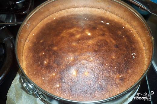 Взбиваем яйца вместе с сахарным песком. Всыпаем муку потихоньку, мешаем лопаткой. Выпекаем бисквит в форме, выстеленной пергаментом, в течение получаса при температуре 160 градусов.