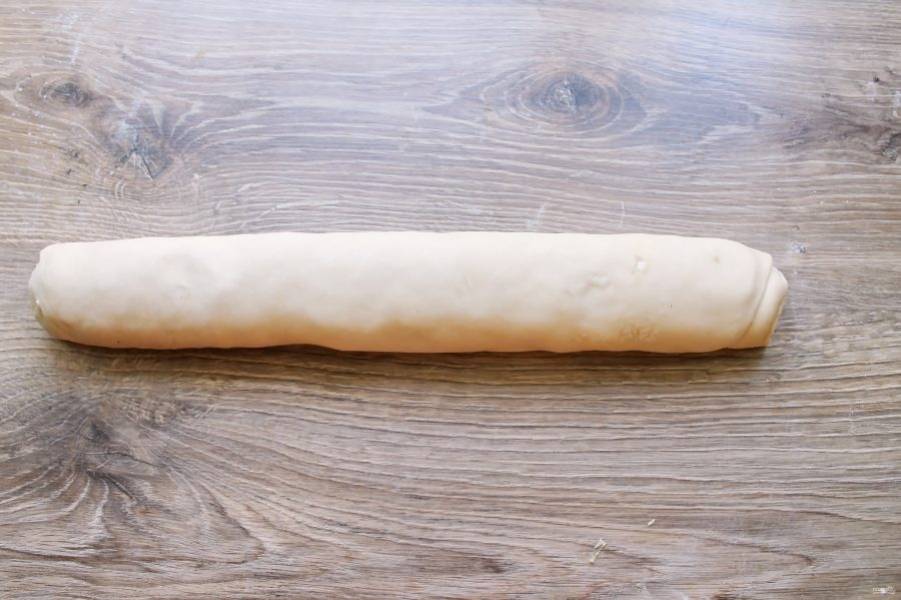 Сверните тесто в плотный рулет.