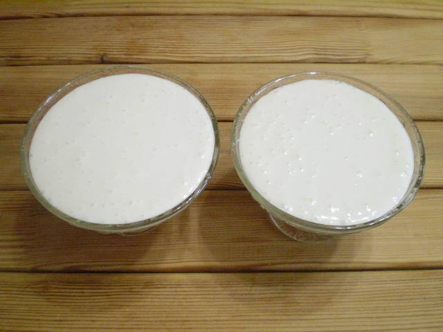 Залейте молочной массой и поставьте в холод на 4-5 часов до полного застывания. Десерт готов!