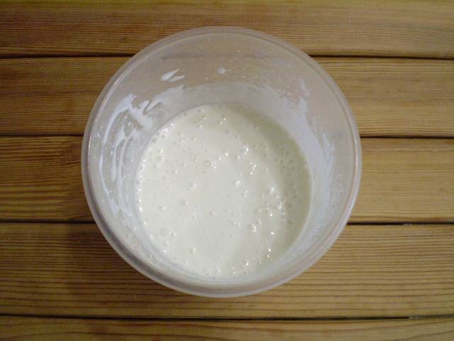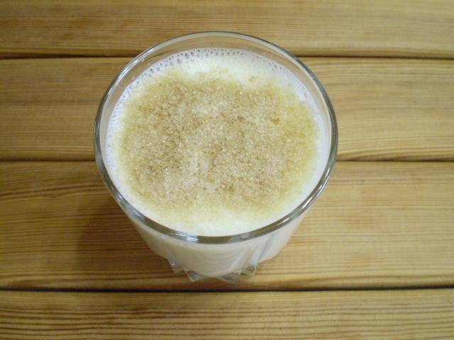 Влейте молоко с желатином и блендером смешайте до однородного состояния.