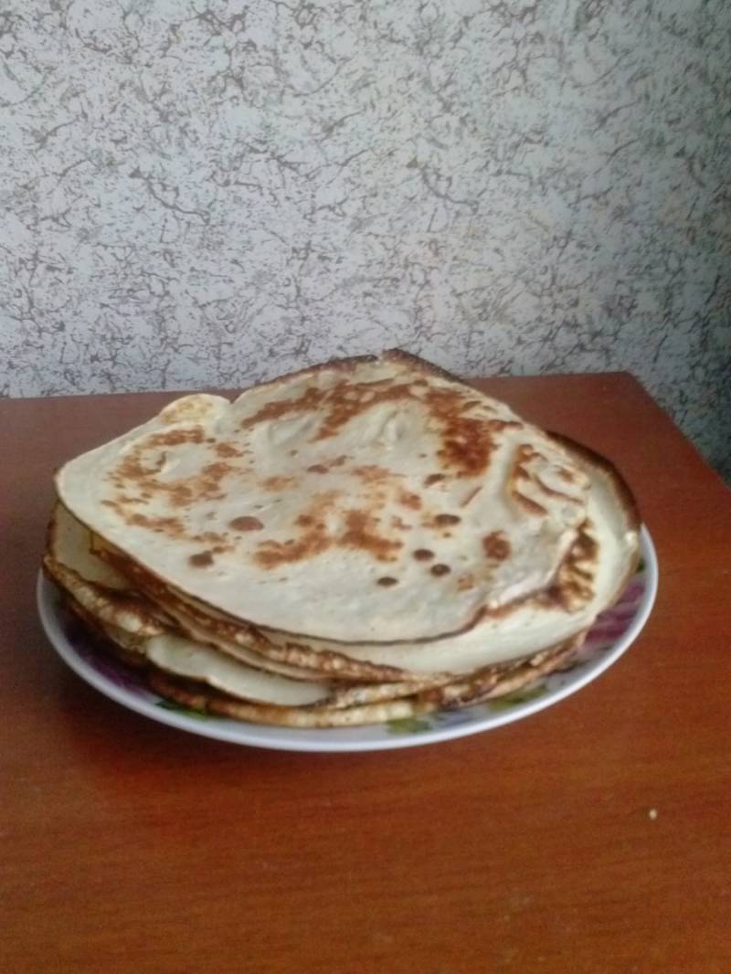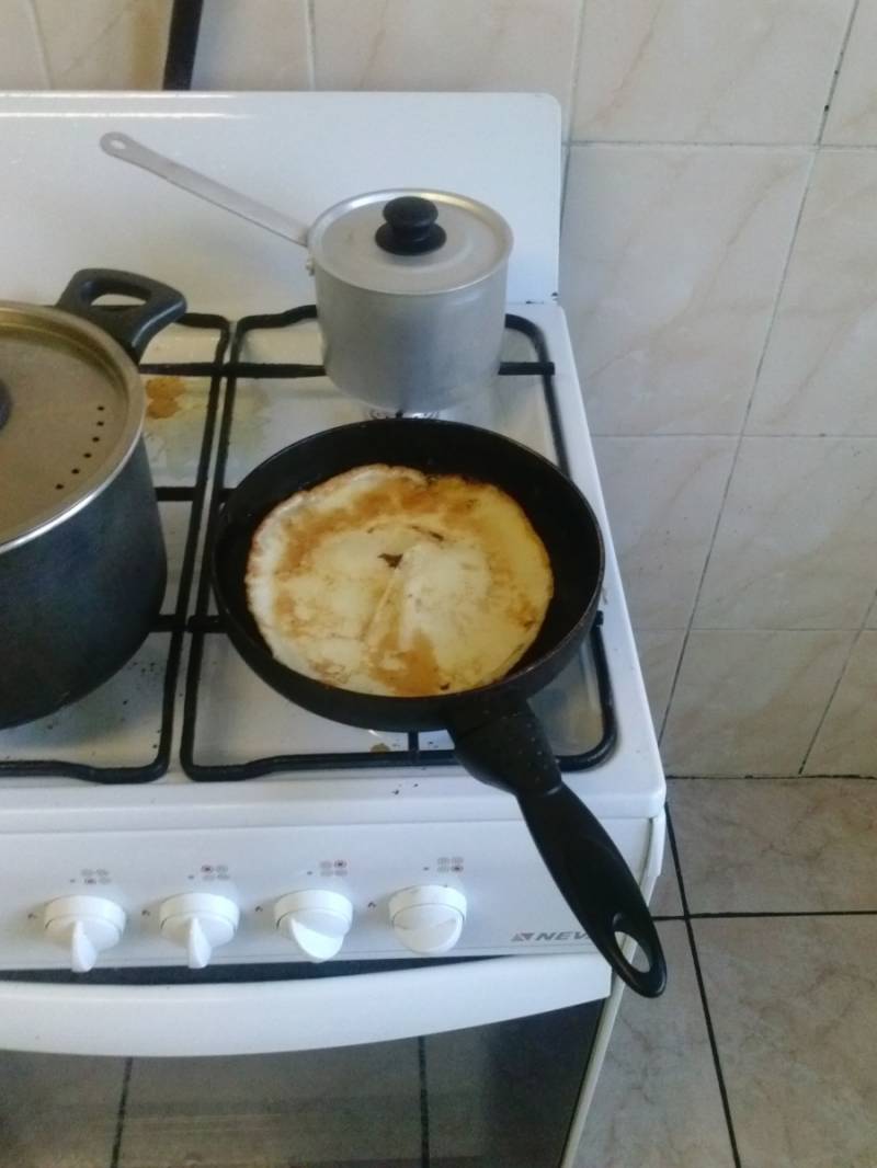 Обжариваем с двух сторон. Перед тем как снова заливать теста, добавляйте чуть-чуть масла, чтоб тесто не пригорело.