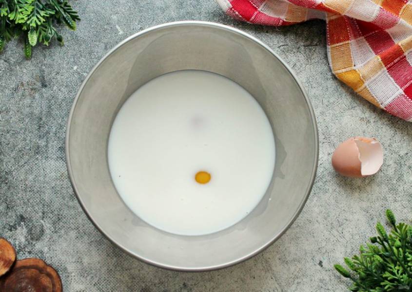 В миску налейте теплое молоко, добавьте соль, сахар и перемешайте до растворения кристаллов.