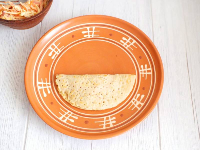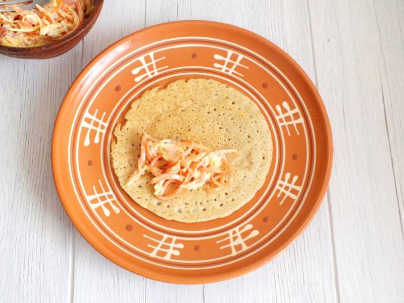 Начинку прикройте второй половиной блинчика.