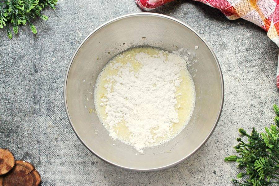 Добавьте муку с разрыхлителем.