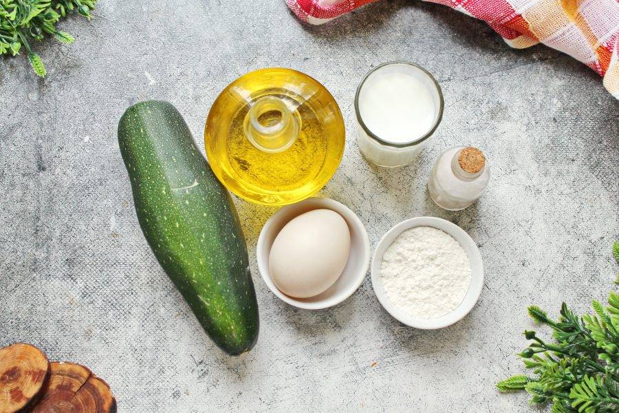 Подготовьте все необходимые ингредиенты для приготовления блинчиков из кабачков. Яйцо и кабачок тщательно вымойте и вытрите. Муку смешайте с разрыхлителем и просейте.