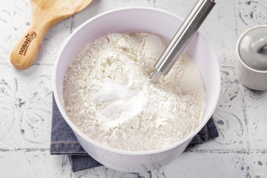 Перемешайте до однородного состояния. Чтобы в тесте не осталось комочков муки, воспользуйтесь миксером.