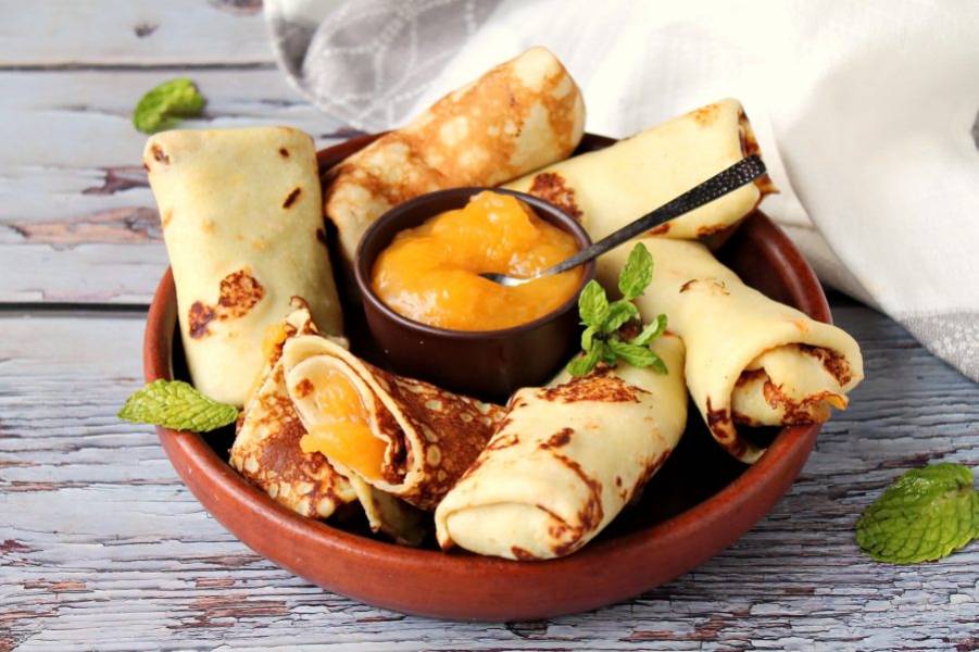 Тонкие блинчики с ароматной и вкусной начинкой из абрикосов будут желанны на любом столе. Готовятся они просто, так что берите идею на заметку!