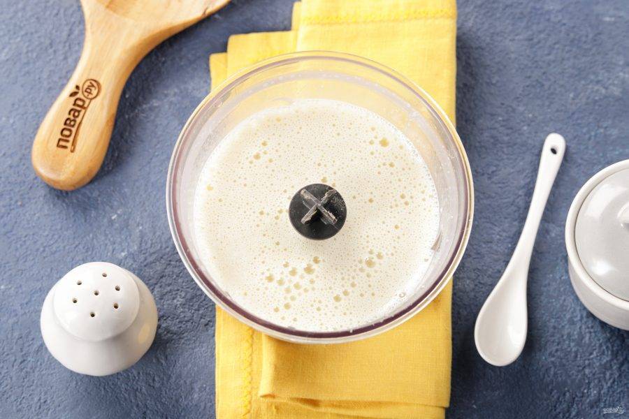 Измельчите всё до однородного состояния, консистенция должна напоминать смузи.