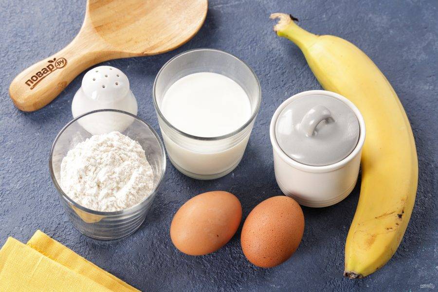 Подготовьте все ингредиенты по списку. Банан берите крупный, спелый и сладкий.