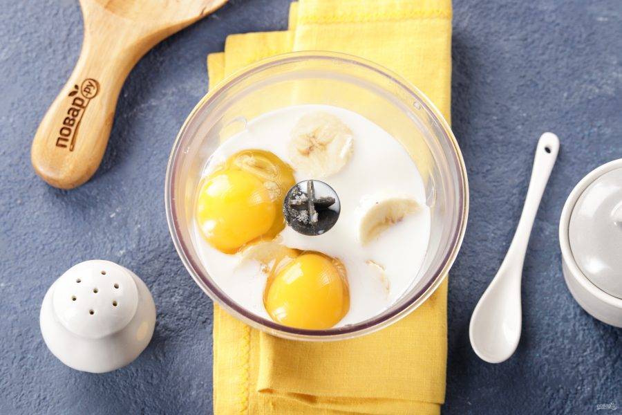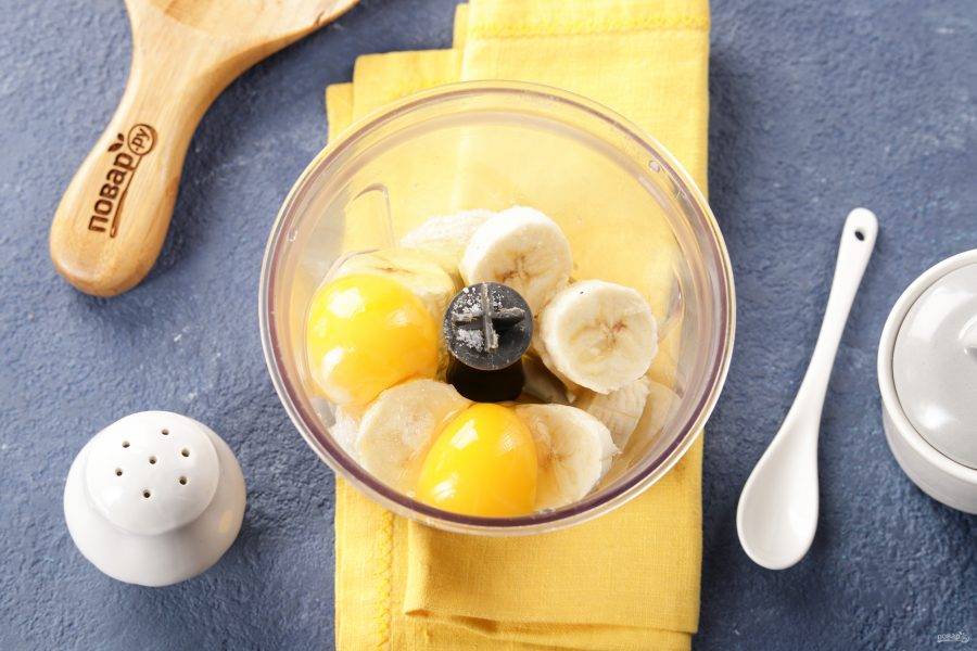 Добавьте к банану яйца, соль и сахар на свой вкус.