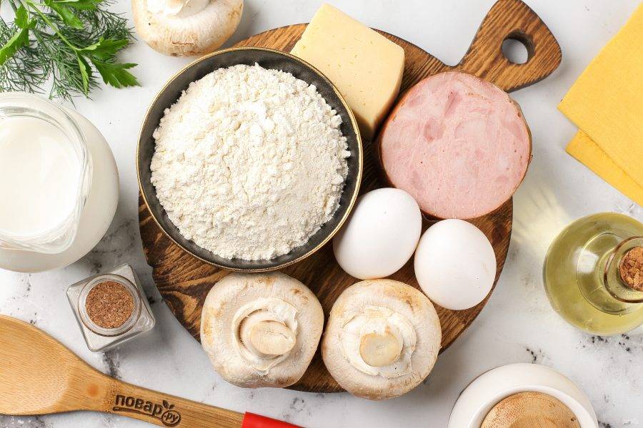 Блинчики с грибами, сыром и ветчиной