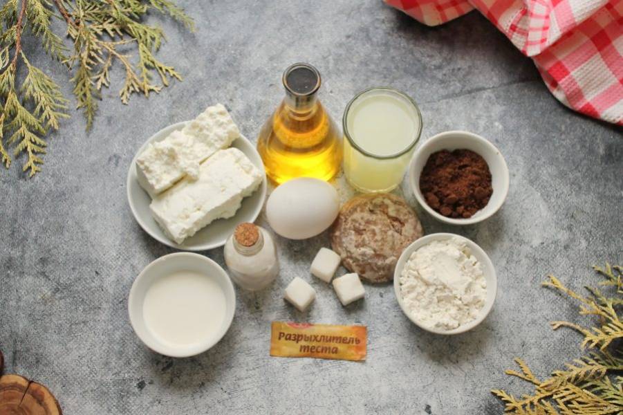 Добавьте в творог третий пряник и черемуховую муку, перемешайте.