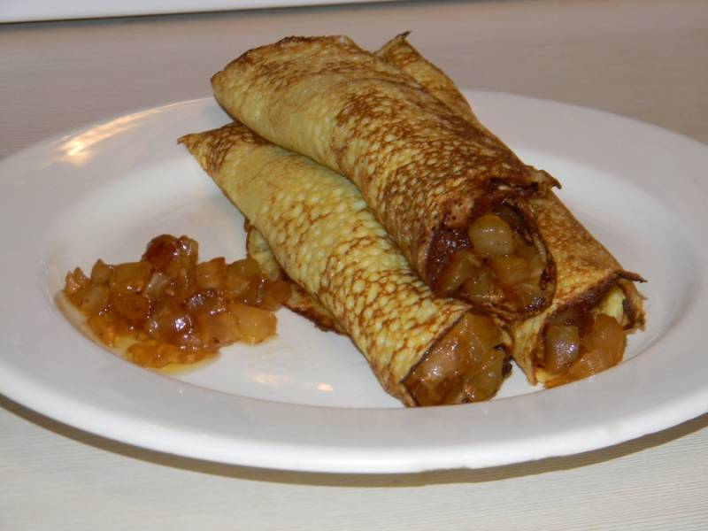 Блины получается очень вкусные сладкие и начинка просто обалденная яблочная!