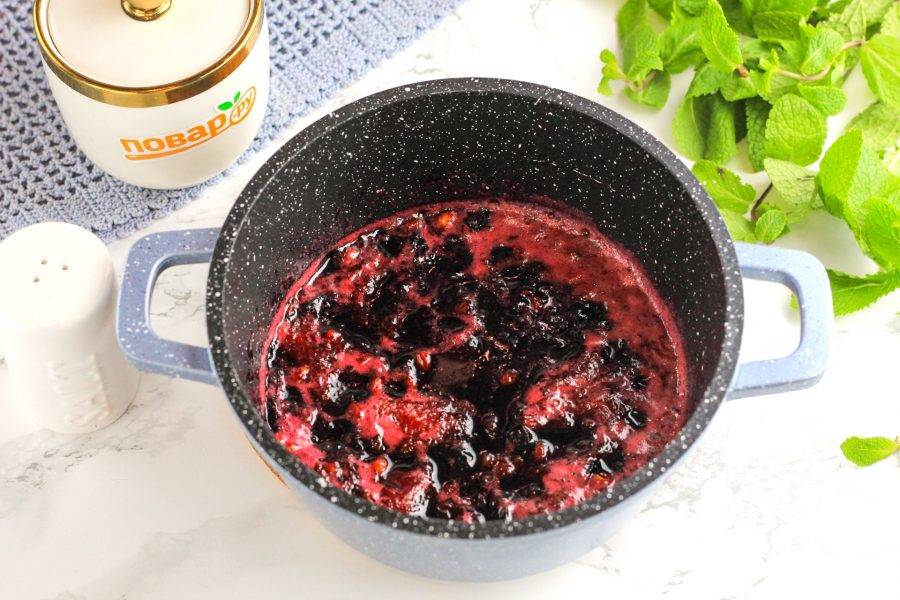 Проварите их с момента закипания примерно 10 минут и тщательно разотрите венчиком или вилкой. Пюрировать не нужно, особенно ягоды с косточками (облепиху)! Оставьте соус остывать, пока вы будете жарить блины — он как раз загустеет!