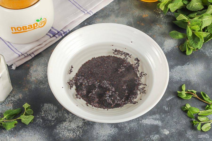Слейте воду с мака и выложите его в емкость вместе с цветочным медом.