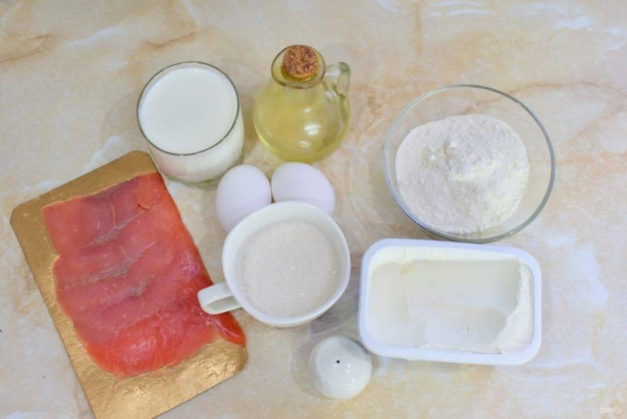 Подготовьте необходимые ингредиенты для приготовления блинных рулетиков.