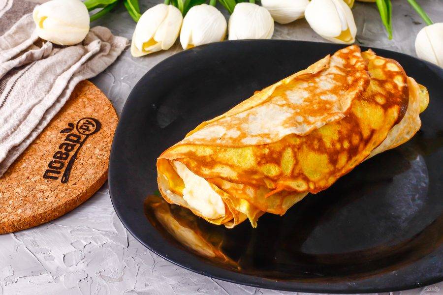 Нежнейший на вкус десерт можно приготовить и без духовки! Удивлены? А вы попробуйте сделать блинный рулет с заварным кремом и угостите им своих родных. Без сомнений — они у вас сразу попросят добавки!