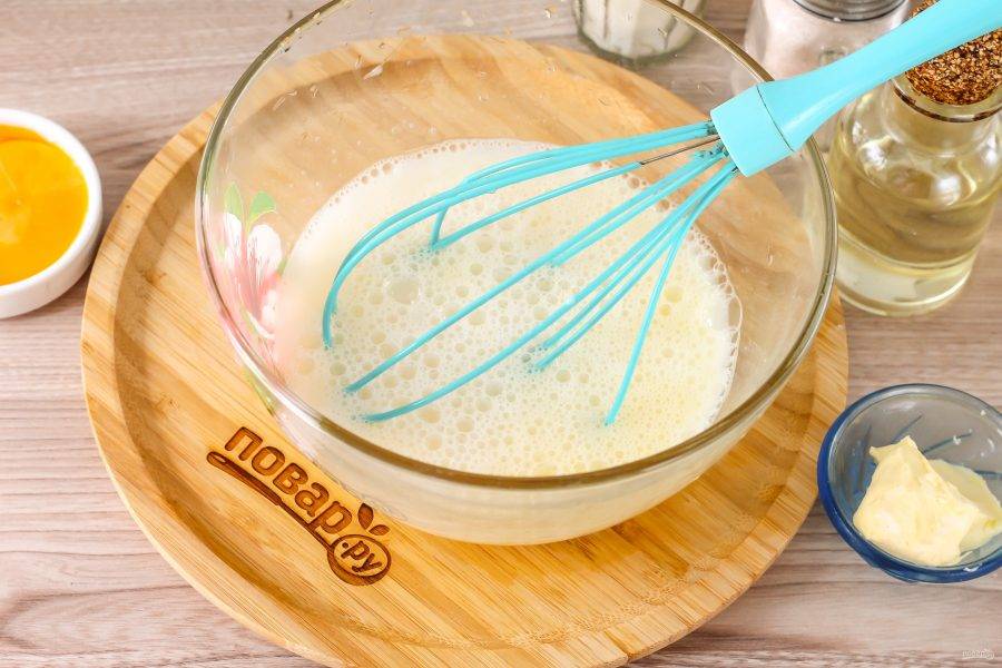 Влейте молоко любой жирности и воду, еще раз взбейте.