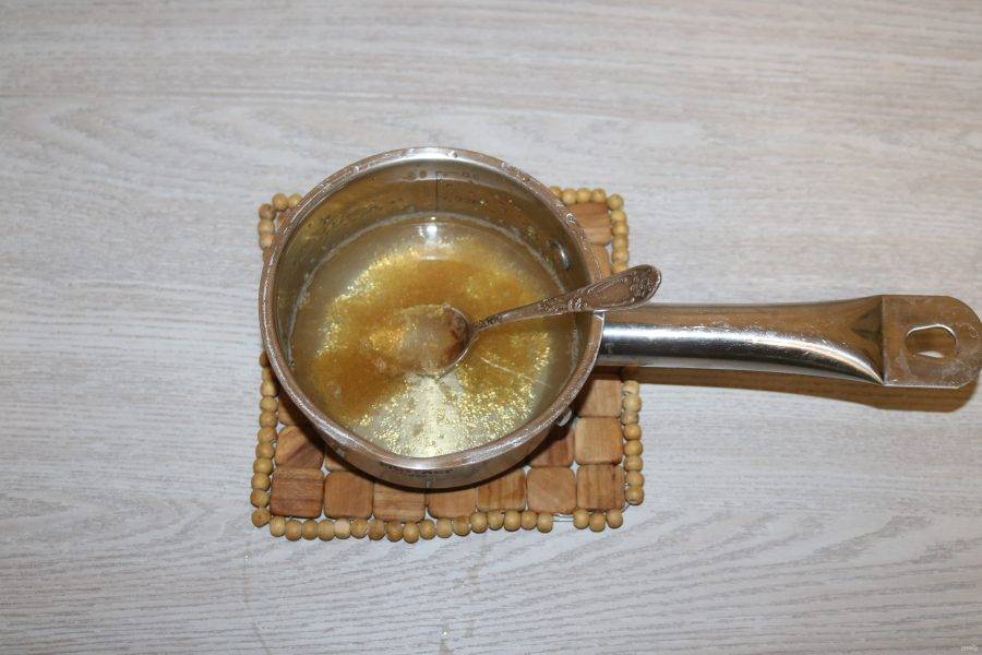 Желатин разведите в 0.5 ст. воды, подогрейте.
