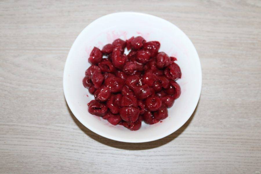 Вишню можно брать свежую или замороженную. Обязательно удалите из вишен косточки!