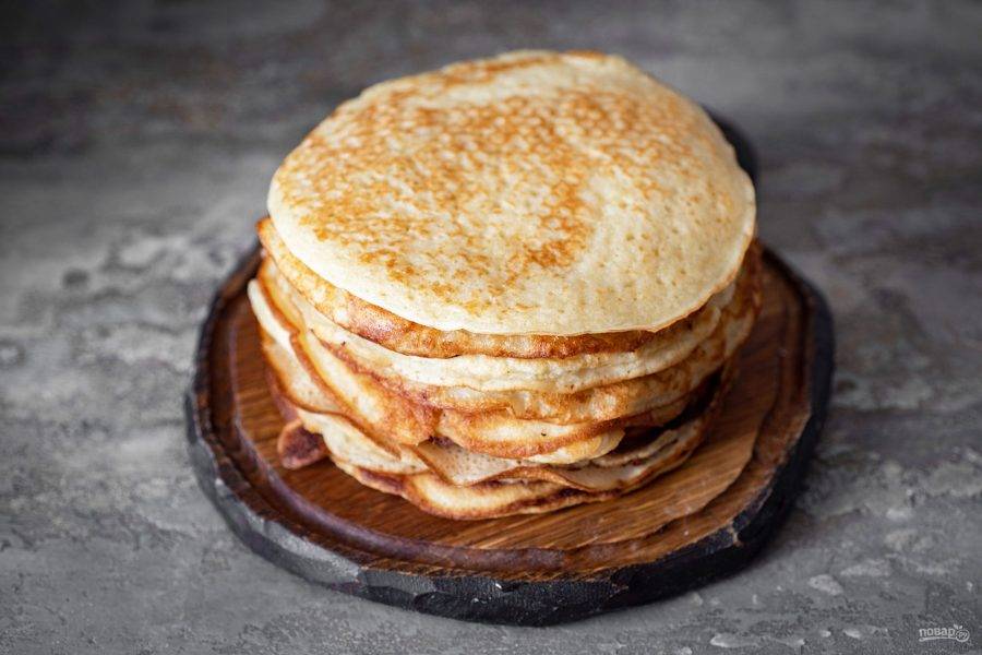 Готовые блинчики получаются толстенькими со сквозными порами-дырочками — выглядят очень аппетитно.