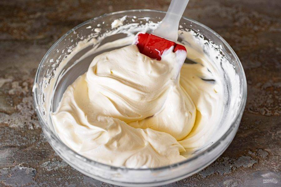 Миксером на небольшой скорости перемешайте эти ингредиенты до полного соединения — в итоге получается нежный, однородный крем.