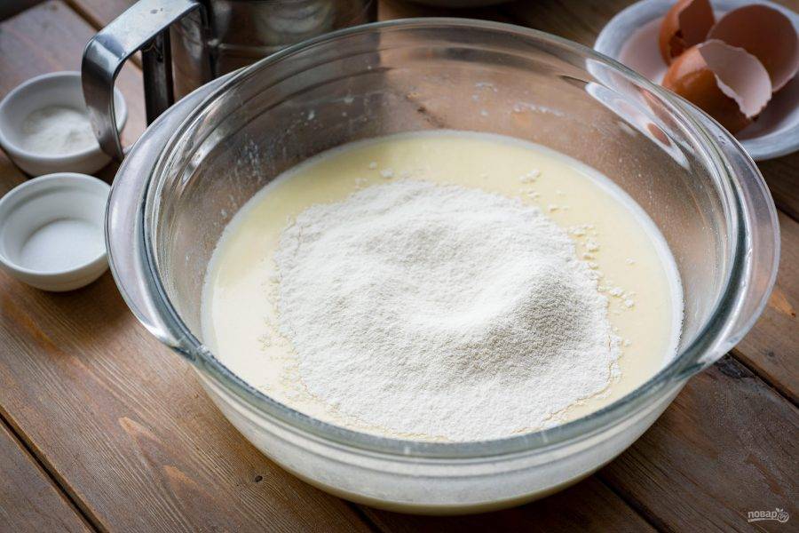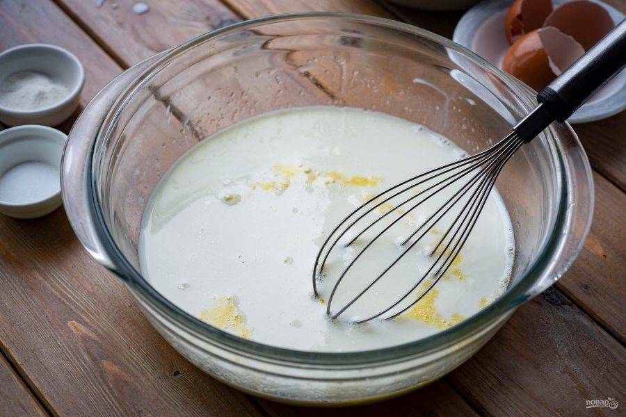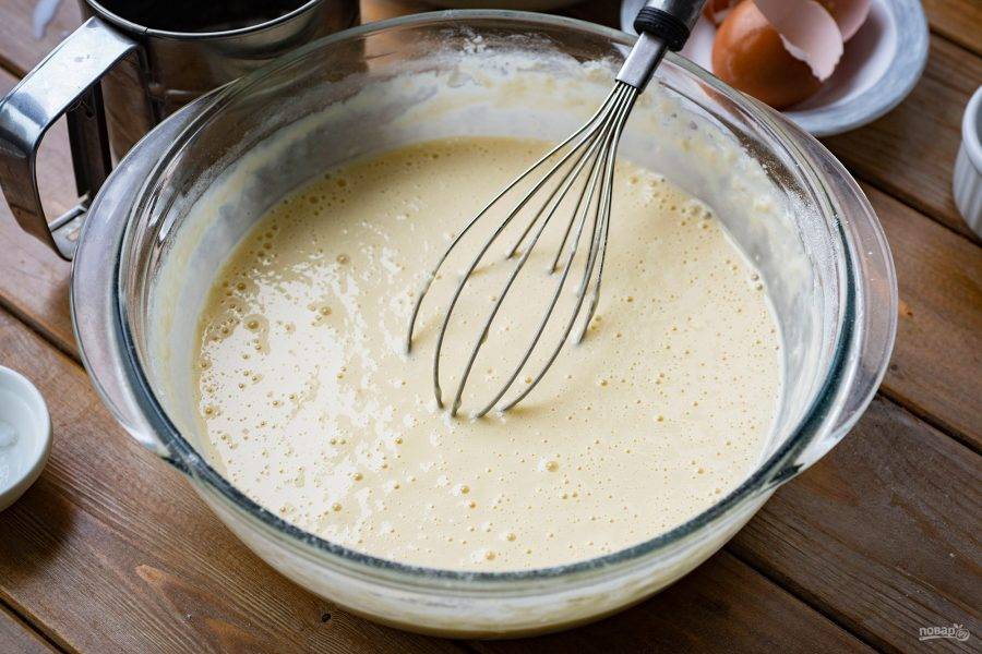 Венчиком активно перемешайте все до получения однородного блинного теста.