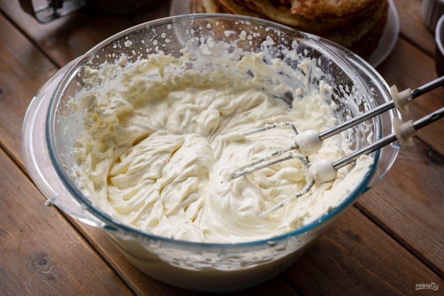 Взбейте миксером эти ингредиенты до получения однородного, нежного крема.