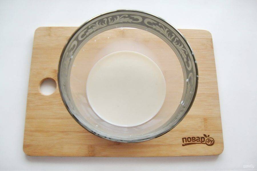 В миску налейте молоко и сыворотку, подогрейте. Всыпьте сахар и дрожжи, перемешайте.
