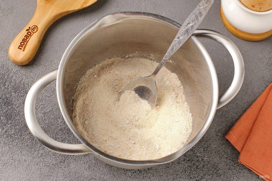 Овсяные хлопья необходимо перемолоть в муку в кофемолке.