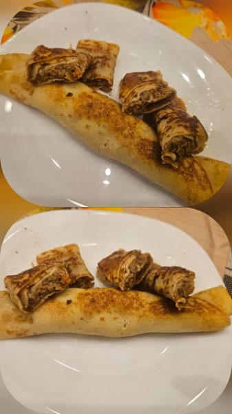 10. После сверните блинчик рулетом. Также поступите со всеми остальными блинами.