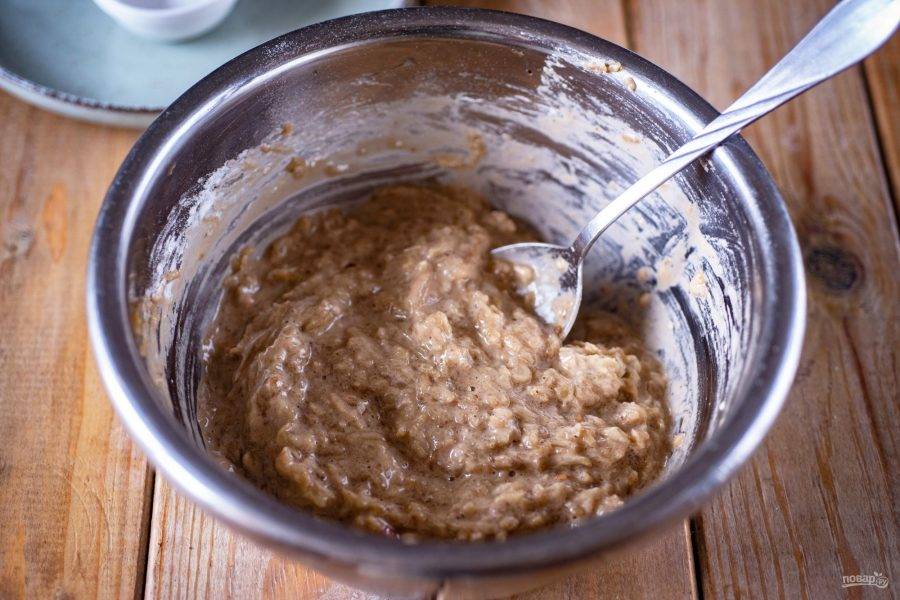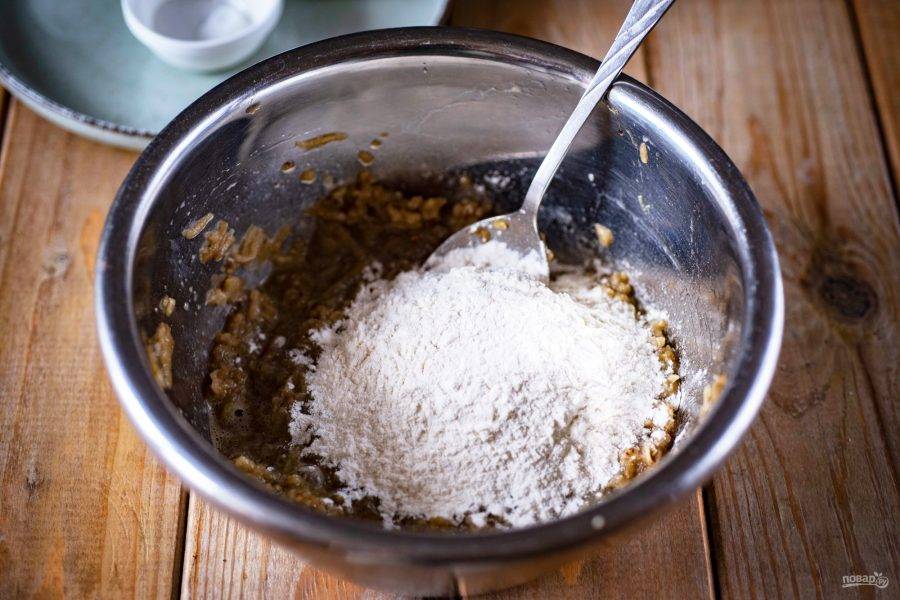Вбейте к тертому баклажану яйца, добавьте соль и перец черный молотый. Перемешайте все.