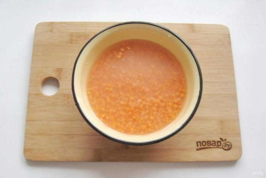 Подготовьте все необходимые продукты для блинов из чечевицы.